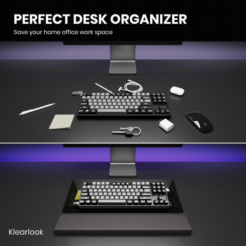 **Klearlook 3 in 1 Keyboard Stand with Wrist Rest and Storage Tray – Ultra Comfortable PU Leather Wrist Pad & Acrylic Keyboard Riser**