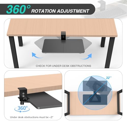 – **Rotatable Functionality:** Our innovative swivel clamp allows the tray to rotate 360 degrees, giving you the flexibility to adjust your workspace to your preferred angle. Easily slide it out of the way when not in use or reposition it for optimal accessibility.